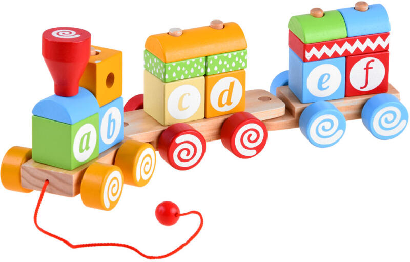 Ez a kis fa vonat nagyszerű játékélménnyel szolgál a gyerekek számára, hiszen a kicsik rajonganak a vonatokért. A készlet egy mozdonyt és 2 kocsit tartalmaz, amelyeket a gyerekek természetesen össze is tudnak kapcsolni. Minden szerelvény más színű és más mintázatú kockák vannak rajta. A fából készült játék rendkívül tartós. Ideális ajándék bármiylen alkalomra. Je