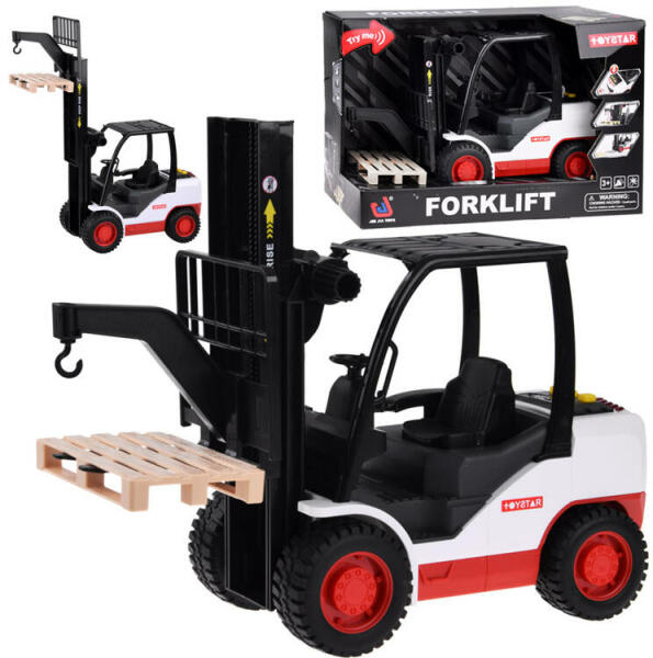 A mozgó alkatrészekkel ellátott targonca minden raktárban elengedhetetlen. Ez a komplett készlet teljes egészében műanyagból készült, mozgó alkatrészekkel rendelkezik, és bármilyen terhelést elbír. Kis mérete ellenére a targonca számos részlettel rendelkezik, amelyek tovább fokozzák a szórakozás élményét. A játék fény- és hangeffektusokkal van felszerelve, például