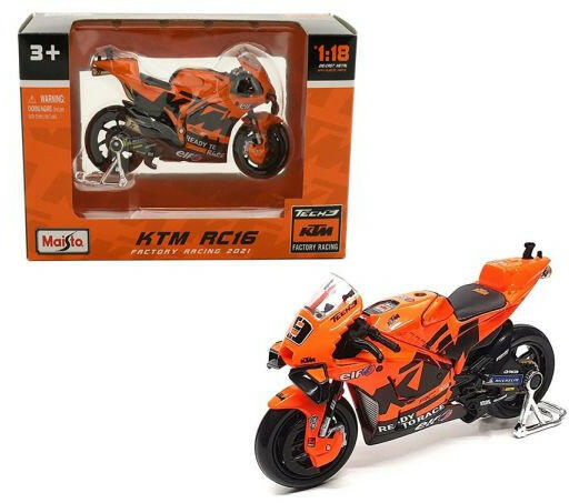 A 2021-es Red Bull Tech3 KTM Factory Team #9 Petrucci a Maisto 1/18-as motorkerékpár-kollekció modellje, amely kiváló minőségű műanyagból és présöntvényből készült. A féktárcsáktól a kormányig, és természetesen a karosszéria minden hiteles fényezése is megtalálható rajta. Rendkívül részletes a kidolgozása. A motor méretei: hosszúsága: 11 cm, magassága: 7 cm. 3