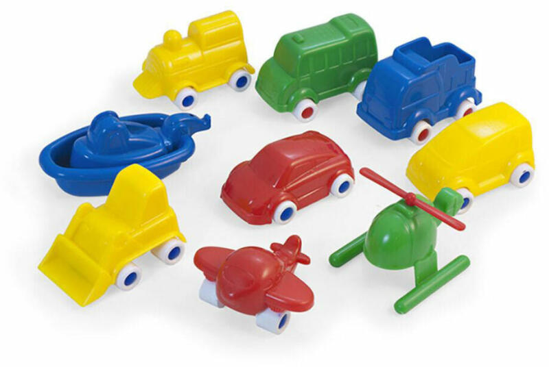 A játék fejleszti a gyermekek fantáziáját, kéz-szem koordinációját, alak- és színfelismerését, valamint térbeli tájékozódási képességét. A készlet tartalma: 1 db hajó, 1 db markoló, 1 db helikopter, 1 db repülőgép, 1 db mozdony, 1 db busz, 1 db kamion, 1 db autó, 1 db kisbusz. Autók mérete: 9 cm. Rugalmas, tartós műanyagból készült, nem eltávolítható, biztons