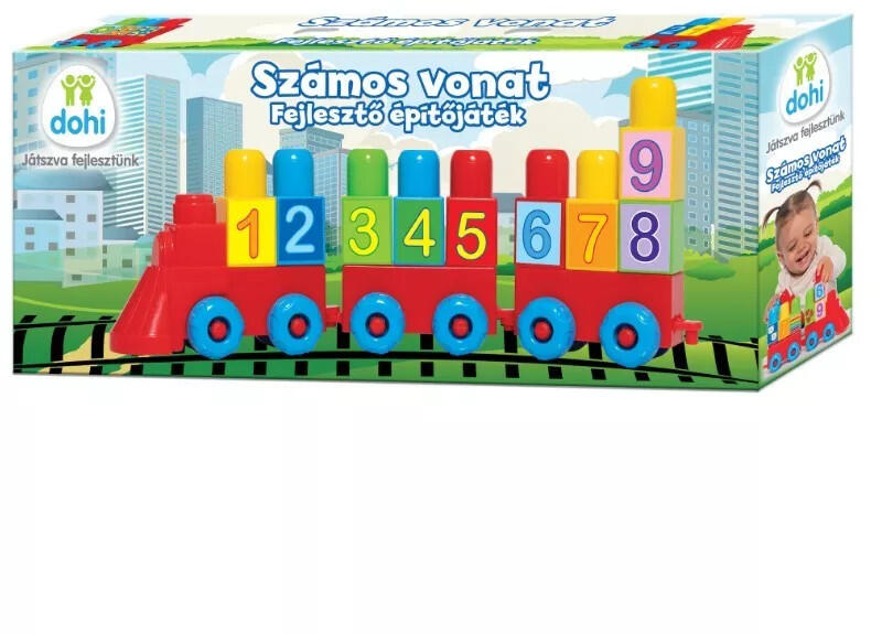A "Számos vonat" építőjáték fejleszti a gyermek kreativitását, miközben megismerkedhet a számokkal is. Jellemzők: - csomagolás mérete: 38,5x16,0x7,0 - anyaga: műanyag, papír - 1 db mozdony - 2db lecsatolható vagon - 9db építőkocka