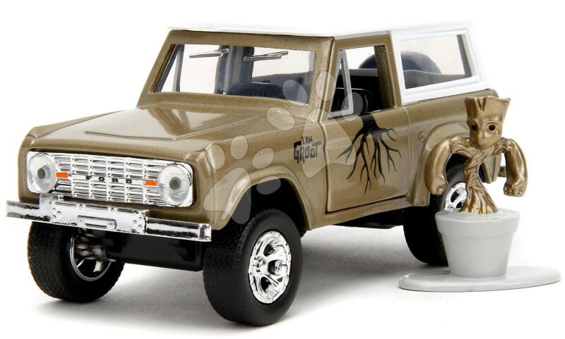 Marvel stúdió által jogdíjjal védett kisautó Ford Bronco 1973 egy igazán nagyszerű ajándék minden gyűjtőnek és gyerkőcnek 8 éves kortól. A 14 cm hosszú fém kisautó minden kisfiút lenyűgöz, a csomagban Groot fém figurája is megtalálható. Jogdíjjal védett kisautó barna színben nyitható ajtókkal van kialakítva. A gyűjtői darab precízen kidolgozott részletei és a