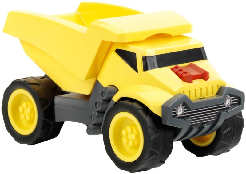 Ez a billenős teherautó igazán szórakoztató: széles gumiabroncsaival ügyesen halad bármilyen terepen, hogy építőanyagokat hozzon be vagy szállítson el. Még a legkisebb építőmunkások is gyorsan kipakolhatják, és biztos, hogy szívükbe zárják.
