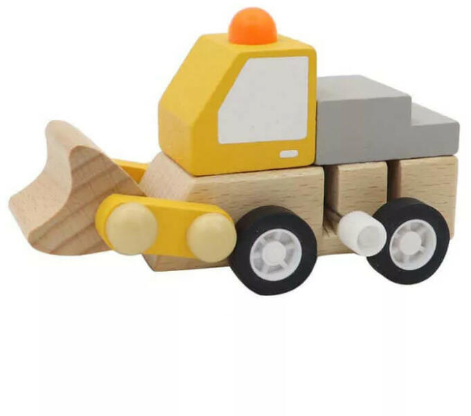 Fából készült felhúzható markoló. Fából készült felhúzható markoló. Alapanyagának köszönhetően rendkívül tartós, ezért hosszú időre lesz a gyermek kedvence. A munkagépen található kart addig kell tekerni, ameddig az megfeszül és máris útjára indul a kis jármű. Méretéből adódóan könnyű megfogni és játszani vele. A remek szórakozás közben fejlődik a gye