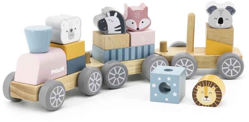 A Viga fából készült vonat a blokkokkal a Jegesmedve kollekcióból egy olyan játék, amelyet minden gyermek szeretni fog. A visszafogott színek és a könnyen megfogható blokkok minden gyermeket játékra ösztönöznek. A vonattal való játék sok szórakozást nyújt gyermekének a mozdonyok és autók építése közben A mozgó autókkal ellátott fa vonat érdekes játék, amely fejl