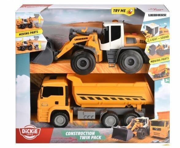 A Dickie Munkagép szett tökéletes választás a kis építkezésrajongók számára! Ez a szett egy Liebherr homlokrakodót és egy MAN teherautót tartalmaz, amelyek részletgazdag kidolgozásukkal és valósághű megjelenésükkel garantáltan elnyerik a gyerekek tetszését. Liebherr Homlokrakodó: A homlokrakodó mozgatható karokkal és lapáttal rendelkezik, ami lehetővé teszi a gyerek