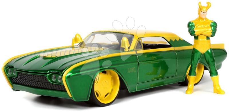 Kisautó Marvel Ford Thunderbird e gy igazán kiváló ajándék minden lelkes gyűjtőknek és gyerekeknek 8 éves kortól. A 22 cm-es fém játékautó valósághű modellje minden kisfiút elbűvöl, a csomagban 7 cm magas Loki fém figurája is megtalálható. A jogdíjjal védett kisautó stílusos zöld-sárga változatban nyitható ajtókkal, kofferrel és motorháztetővel van kialakítva.