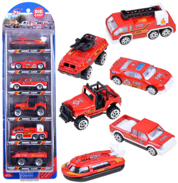 A járműkészlet garantáltan tetszeni fog minden kis autókedvelőnek. A 6 db tűzoltóautóból álló készlet a legjobb választás mindazok számára, akik nem félnek a kihívásoktól és bátran néznek szembe minden fenyegetéssel, akárcsak a tűzoltók. A készlet segítségével minden fiú megóvja játékait minden problémától. A fém autók műanyag, mozgatható tartozékokkal r
