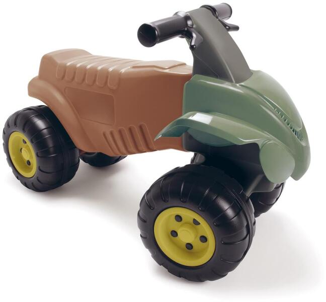 Lábbal hajtható jármű a legkisebbeknek. Az eszköz kivitelezésének köszönhetően a játékélmény biztonságos és kényelmes lehet. Nagy átmérőjű kerekei könnyebben veszik a kisebb göröngyöket. Megjelenése egy kisméretű quadra hasnolít, mely biztosan felkelti a kicsik érdeklődését. Ajánlott életkor: 2 éves kortólMaximális terhelhetőség: 50 kgAnyag: műanyagMéret: