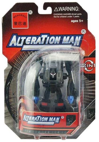 A fekete Alteration man átalakuló robot egy műanyagból készült harci robot figura, akit pár mozdulattal egy amerikai rendőrautóvá tudsz átalakítani. A robot karjaiban egy-egy pengét találsz, amikkel le tudod győzni az ellenségeit, autóvá átalakítva a játékot tologathatod, vagy akár autópályákon is használhatod. Az átalakuló robot mérete: 10 cm. > 3 éves kortól