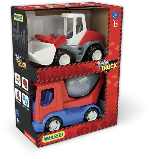 Tech Truck Betonkeverő és homlokrakodó dobozban - Wader Hivatalos magyarországi forgalmazótól. Leírás: Bármilyen építkezős játékot is játszanak a gyerekek ennek a két munkagépnek garantáltan akad majd ott munkája, hiszen a csomagban egy vagány homlokrakodó és egy piros-kék színű betonkeverő kocsi található. A Tech Truck munkagépek nagyszerű játékélményt kínál a