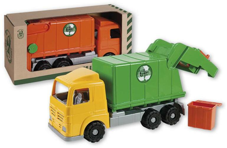 Kiváló minőségű műanyagból készült, nagyméretű, környezetbarát teherautó, felnyitható hátlappal és egy barna környezetbarát dobozba csomagolt Millenium szemeteskukával. A felhasznált műanyagok erősek, ugyanakkor rugalmasak és nem repednek meg normál játék közbe