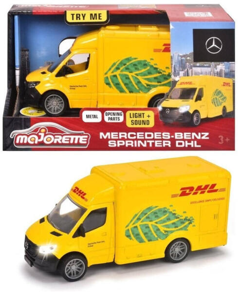 A hivatalosan licenszelt Mercedes-Benz márkanevet viselő futárautó valósághű élményt nyújt a gyerekeknek a szerepjátékok során. A fémkarosszériás autó gumikerekekkel, mozgó részekkel és precízen kidolgozott részletekkel rendelkezik. A sárga autó pir...