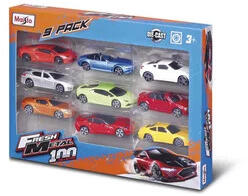 Maisto Fresh Metal autók, 9 db/csomag Autókészlet a kis motorsportrajongóknak. A készlet 9 különböző járműmodellt tartalmaz. Maisto autómodellek körülbelül 1/64-es méretarányban, autó méretei: hossza kb. 7 cm. 3 éves kortól ajánlott.