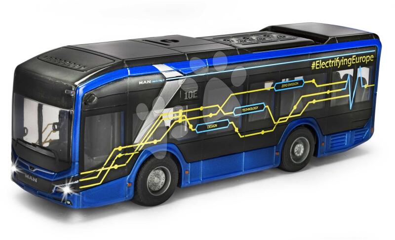 Autóbusz MAN Lion´s City 10 E a francia Majorette márkától gyerekeknek 3 éves kortól. A hivatalosan licenszelt MAN autóbusz részletgazdag kialakításával és kék színével nyeri el a kisfiúk tetszését. A fémkarosszériás autó gumikerekekkel és mozgatható részekkel rendelkezik, valósághű benyomást kelt és órákra leköti a gyerekeket. Az autóbusz hangokat ad ki és vil