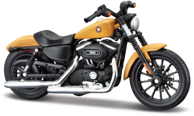 A 2014-es Sportster Iron 883 motorkerékpár 1:18 méretarányú modellje. Főbb jellemzők és specifikációk: Forgatható kormány Rögzített hátsó tengely Talpazatra szerelve A csomag méretei - 17,8x10,6x6,35cm 3+ éves korosztály számára készült