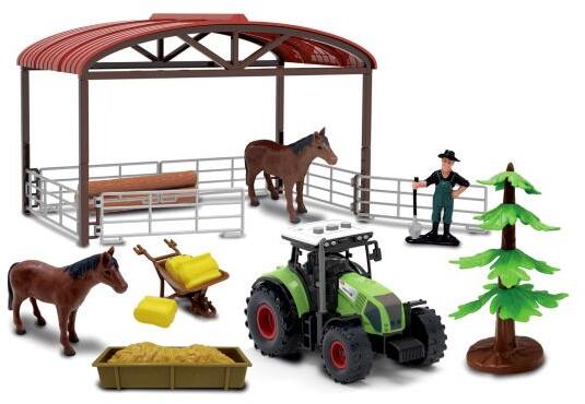 Miért ne építenél saját istállót kerítéssel a lovak számára? Ezzel a készlettel ideális lehetőséged van. A kis farmod felépítéséhez kerítést, istállót a lovaknak, szénát, traktorot és egy gazdát is kapsz, aki gondoskodik a farmodról. A csomagban természetesen megtalálod a ló figurákat és egyéb kiegészítőket. A traktor tetején lévő három gomb egyikének megn
