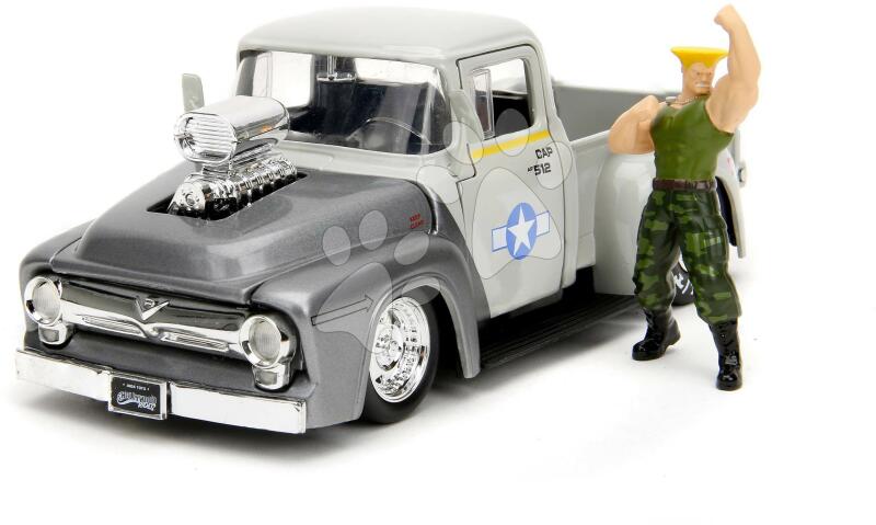Kisautó Ford Pickup 1956 a népszerű Street Fighter japán sorozat motívummal lelkes gyűjtőknek és gyerekeknek 8 éves kortól ajánlott. A 20 cm-es fém játékautó valósághű modellje minden kisfiút elbűvöl, a csomagban Guile harcos fémfigurája is megtalálható. A jogdíjjal védett játékautó szürke változatban nyitható ajtókkal, kofferrel és levehető motorháztetővel va