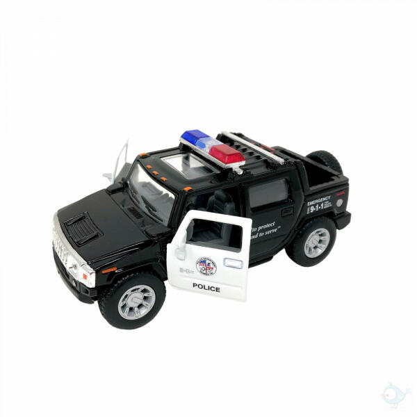 Kinsmart márkáju Hummer H2 SUT 2005 Police egy olyan fémből készült kisautó, amely 1:40 méretarányos kivitelben, modell szintű kidolgozással, nyitható ajtókkal, hátrahúzós funkcióval kápráztatja el gyermekét. Mérete: 12 cm