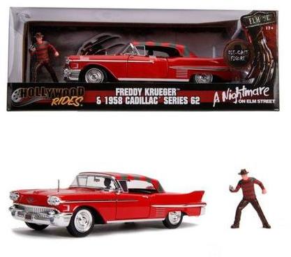 Rémálom az Elm utcában: 1958 Cadillac Series 62 fém autómodell 1/24 - Simba Toys Hivatalos magyarországi forgalmazótól. Leírás: A Rémálom az Elm utcában közel sem gyerek film, mégis előbb utóbb minden fiatal találkozik, hiszen horrort nézni elég menő dolognak tűnik számukra. Freddy Krueger az egyik legismertebb horror figura, ám most a rajongók a fickó 1958-as Cadillac Se