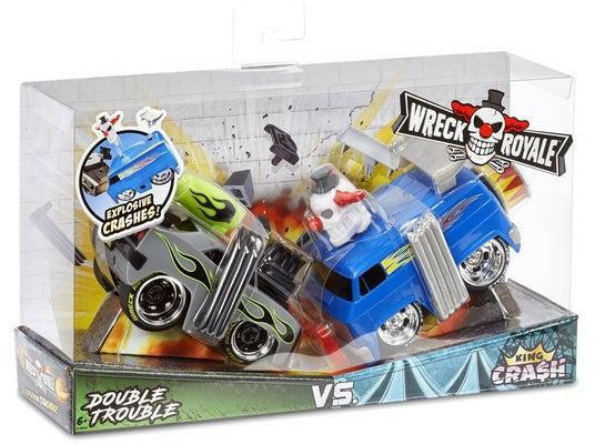 Kirobbanó ütközések, ez a Wreck Royale! Amikor ezek az autók összeütköznek, rugós lökhárítóik megfordulnak és a hozzájuk kapcsolódó alkatrészek minden irányban szétrobbannak. Minden autóhoz tartozik négy exkluzív, vidám, "robbanó" alkatrész, amelyeket a gyerekek fel tudnak erősíteni autóikra. A szettben két Wreck Royale autót találsz, Double Trouble és King Crash k