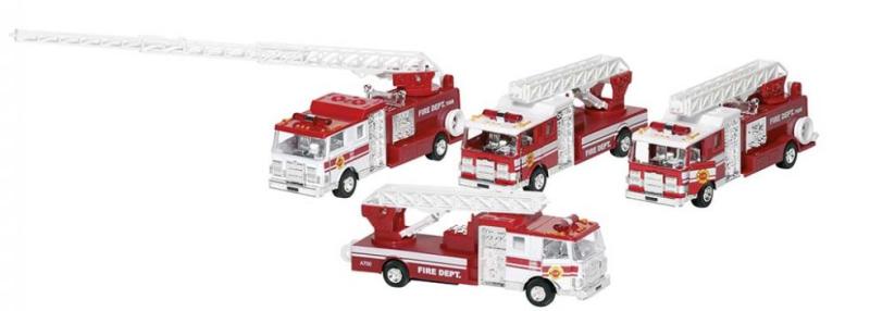 Die-cast fém lendkerekes játék tűzoltóautó négy változatban, nyitható ajtókkal, kihúzható létrával, fény- és hangjelzéssel, ami az első kerék lenyomásával aktiválható. Anyaga: fém Méret: 17,5 cm Az ár egy db-ra vonatkozik.