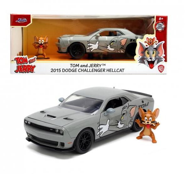 A Tom és Jerry 2015 Dodge Challenger fém autómodell figurával játékszett el egy újabb macska-egér harcot játszhatsz el egy vagány és erős járgánnyal. A szürke Dodge oldalán Tom macska nyúl a virgonc kis Jerry után. Vajon melyikük ér előbb célba? A valósághű, részletesen kidolgozott autómodell ajtajai, motorház teteje és csomagtartója nyithatóak és természetesen Jer