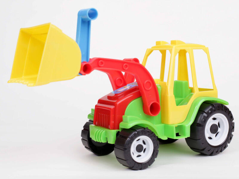 A nagy homlokrakodóval felszerelt kotrógépnek két karja van, amelyek megkönnyítik a homok, kis tömbök stb. felszedését. A karok nagyon vonzóvá teszik a traktorral való játékot, és egyben kitűnő oktatási elemként szolgálnak a gyerekek számára, hogyan is működik egy munkagép. A traktor hátulján van egy horog, amelyre pótkocsit lehet csatlakoztatni. Traktor rakodóval (15