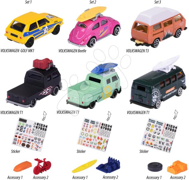 VW The Originals játékautók a francia Majorette gyártótól gyerekeknek 3 éves kortól ajánlottak. gyerekeknek 3 éves kortól ajánlottak. A licenszelt Volkswagen autómodellek valósághű élményeket ígérnek. A fémből készült részletgazdag játékautók nyitható részekkel rendelkeznek. A Majorette márka 2-részes autókészletet kínál különböző kombinációkban. A feltün