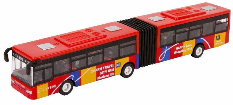 Városi csuklós busz, amivel sok utast szállíthatsz! Az 1:64 méretarányú busz egy fémből és műanyagból készült, igényes megjelenésű busz, hátrahúzós meghajtással. A buszt együtt tudod használni bármilyen 1:64 méretarányú autóval, készlettel is. Figye...