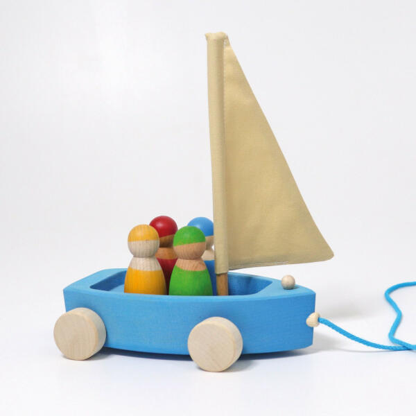 Egyedi forma- és színvilágú játékok a fenntarthatóság és a természet jegyében. Kézzel faragott Grimm's húzogatós játék, négy tengerész ül a hajóban. Szárazföldön kerekeken gurul, vízen pedig lebeg, a fürdőkádba beteheted. Használd fel a játék elemeit, ahányféleképpen csak szeretnéd, vagy kombináld őket további Grimm's játékokkal az örömteli játékélmény