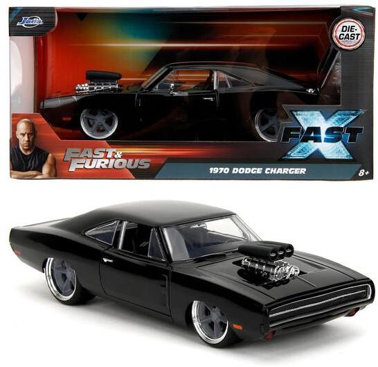 A Fast & Furious 1970 Dodge játékautó 1:24 méretarányú, amely pontosan visszaadja a híres Dodge Charger megjelenését a "Halálos iramban" filmekből. Ez a részletgazdag modell a klasszikus amerikai izomautó ikonikus formáit és erőteljes megjelenését hozza el, amely a filmek egyik legismertebb járműve. A jármű hossza körülbelül 19 cm, tartós műanyagból készült, így