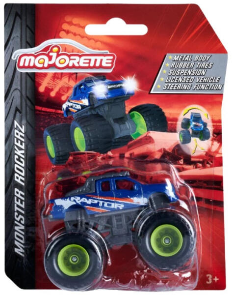 A Majorette Monster Rockerz - Ford Raptor kisautó remek meglepetés lehet gyermekének, és új szintre emeli a szörnyjárgányok életét. Így dobogtatja meg az izgalomra vágyó kisfiúk szívét, akik fantasztikus száguldásba foghatnak az erős műanyag ból készült, minőségi kocsival, amit elképesztővé tesz a strapabíró és hatalmas BKT gumi , hogy eredeti Monster Rockerz legyen.