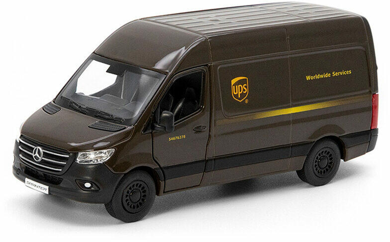A Kinsmart Mercedes-Benz Sprinter UPS Edition autó különlegesség minden gyermeket és gyűjtőt elvarázsol. A stílusos festés és a részletes belső és külső kialakítás igazán élethűvé varázsolja ezt a modellt. Az autó ajtai nyithatóak és hátrahúzós moto...