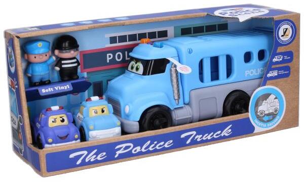 Autó rendőrségi készlet 4 db. Az autó mérete 26 cm. Fény- és hanghatások. Fékezési rendszer. 3xAG13 elem tartozék. Kor: 2+ Tartalmazza nagy autó, 2 kis autó 7 cm, 2 figura.