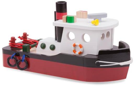 Gyönyörű fa vontató, ideális 3 éves kortól, amely a gyerekeket a konténerkikötő és a tengeri kalandok világába repíti! Ültesse kis kapitányát a kormány mögé, és induljanak el egy lenyűgöző hajóútra. Miközben a vontató a kikötőben kanyarog, gyermeke előtt végtelen fantáziavilág nyílik meg. A részletes kidolgozásnak és a kiváló minőségű fának köszönhető