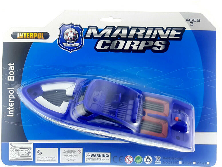 Elemes rendőr motorcsónak. 3 éves kor felett! Elemes rendőrmotorcsónakkal minden bűnügy megoldásra kerül a vizeken! Csak 2 db "AA" 1.5V elem kell hozzá és már kezdődhet is a bűnüldözés. Az elem nem tartozék! Anyaga: Műanyag