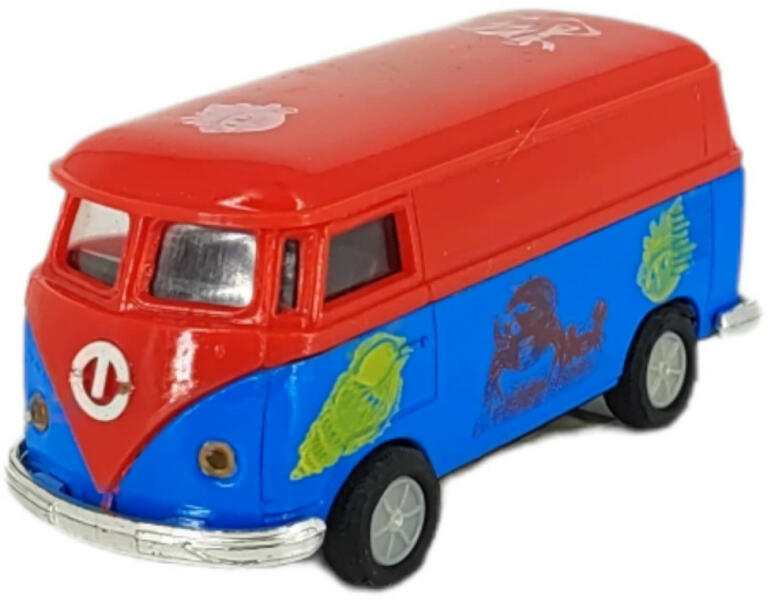 Játék furgon nyitható ajtóval - piros/kék Játék furgon nyitható ajtóval - piros/kék. Halakkal, kagylókkal, rákokkal van díszítve ez a piros-kék furgon , amivel a tenger gyümölcseit szállítják az éttermekbe a halászok. Természetesen a gyerekek mást is szállíthatnak az autóval, hiszen ők lesznek a sorfőrök :) A játékautó oldalsó tolóajtaja nyitható, így könnyebb