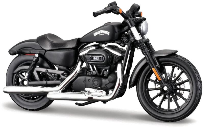 A 2014-es Sportster Iron 883 motorkerékpár 1:18 méretarányú modellje. Főbb jellemzők és specifikációk: Forgatható kormány Rögzített hátsó tengely Talpazatra szerelve A csomag méretei - 17,8x10,6x6,35cm 3+ éves korosztály számára készült