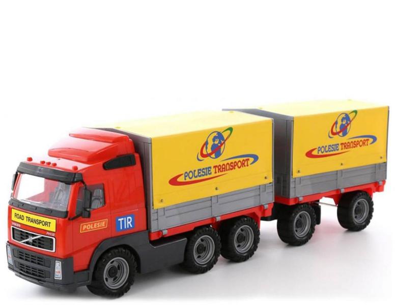 Volvo ponyvás pótkocsis teherautó POLE-8732 Polesie Volvo márkájú ponyvás, pótkocsis teherautó. Rakományokat szeretnél szállítani Akkor ez az óriás ponyvás teherautó csak Rád vár Járműveddel homokot, kavicsokat vagy akár kedvenc kisjátékaidat is szállíthatod. Ponyvája leszedhető, lenyitható platója segít a rakományod könnyebb kipakolásában. Masszív kerekei megk