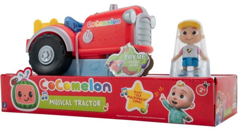 Ezt a menő piros színű traktort a a népszerű Cocomelon sorozat ihlette. A zenélő traktorral dallamos utazásra indulhat gyermeke. A traktorhoz tartozik egy 7,5 cm magas JJ figura is, de a járműbe bármelyik kis méretű Cocomelon figurát belehelyezheti. Ha megnyomja a traktor elejét, akkor az elkezdi játszani az "Old MacDonald" dal egy részletét. Ezenkívül állat- és traktorhangok