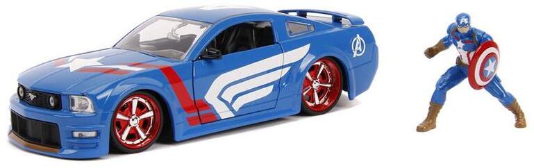 A Marvel - 2006 Ford Mustang GT játékautó Amerika kapitány figurával - 1:24 egy igazán megnyerő izomautó, melyet a híres, titkos katonai kísérletben részt vett Steve Rogers , azaz Amerika kapitány kapott meg és alakított saját képére. Az egyik legismertebb, limitált szériás Ford festése igazán egyedi és erőt sugárzó! Az amerikai hazafinak - aki a világ megmentőjévé v