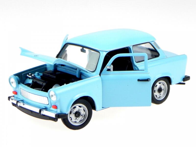 Mérete 15 cm (1:24 méretarány). Fémből készült a karosszéria, mely rendkívül részletgazdag: tökéletesen visszaadja a 601-es Trabant minden tipikus ismertetőjegyét. Nyithatók az ajtók, és a motorháztető is, mely alatt látványosan, részletgazdagon kialakításra került a 601-es kétütemű motorja is. Garancia (fogyasztóknak): 6 hónap Számos fajta 2T Trabant modellautó va