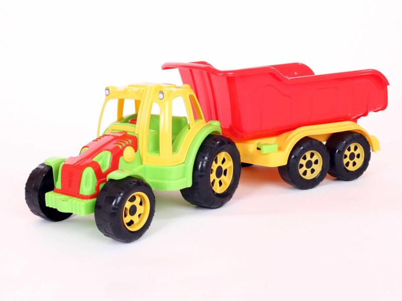 A Traktor 343 néven megvásárolható masszív traktor egy nagy és magas, hátrafelé billenő pótkocsiból áll. Az utánfutó egy karral rendelkezik, amely elősegíti az utánfutó döntését. Nagy traktor utánfutóval (343) Tulajdonságok: - hossza: 77 cm - szélessége: 27 cm - magassága: 26 cm - anyaga: minőségi műanyag - finom motorikus mozgást fejlesztő játék A termék színei