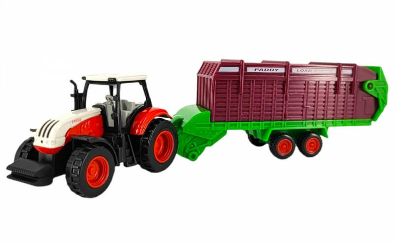 Játék traktor szénaszedő pótkocsival 1:72 Játék traktor szénaszedő pótkocsival 1:72. Kis mezőgazdászok részére nagyszerű ajándék ez a játék traktor , amihez szénaszedő pótkocsit is lehet csatlakoztatni. A pótkocsiba össze lehet gyűjteni a földeken összegyűlt szénát, amit a piros tarktor segítségével el tudnak szállítani a gyerekek a gazdaságba, hogy az állatoka