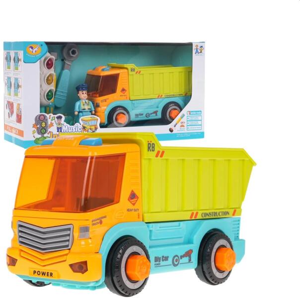 A tartozékokkal ellátott csavarozáshoz használható billenő 3 éves kortól gyermekek számára készült. A játék a legjobb minőségű műanyagból készült, élénk színekben. A jármű összecsukható, a készlet 2 db csavarhúzót tartalmaz. A készlet tartalmaz egy interaktív közlekedési lámpát hang- és fényeffektusokkal és egy rendőr figurát is. A jármű abroncsokon gumi