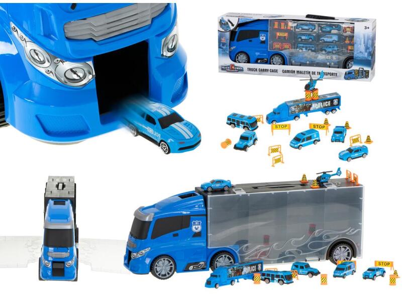 Egy nagy kék teherautó, amellyel biztonságosan szállíthatja a hozzá csatlakoztatott kis autókat. Bankrablás? Baleset? Veszélyes bűnöző megszökött a börtönből? A rendőrség úton van! A kis méretű műanyag autók tökéletesen utánozzák a valódi járműveket. Minden jármű gondosan kidolgozott. Az autókat egy hatalmas teherautóval visszük az akció helyszínére. Egy 6 na