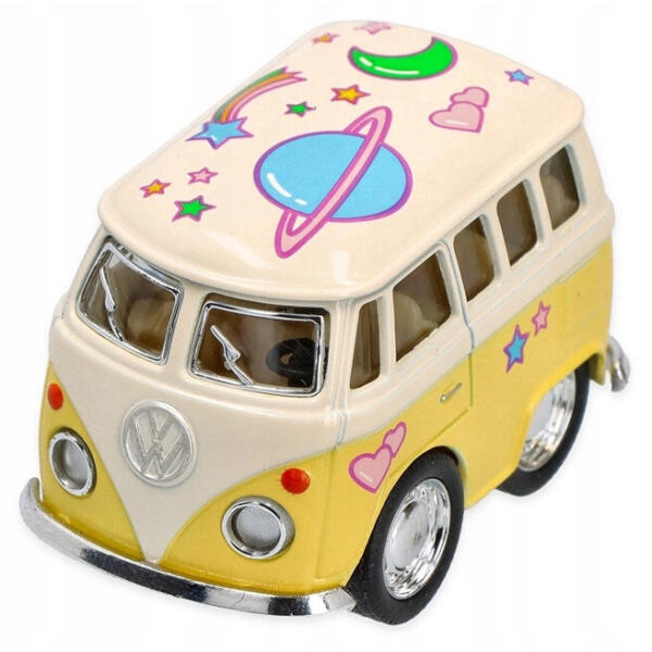 A Kinsmart Volkswagen T1 mini autó különlegesség minden gyermeket és gyűjtőt elvarázsol. A stílusos festés és a részletes belső és külső kialakítás igazán élethűvé varázsolja ezt a modellt. Az autó hátrahúzós motorral rendelkezik. A kisautó fém és m...