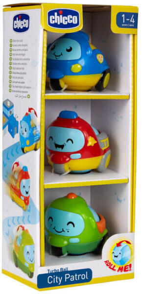 3 mini autó az első kalandokhoz Chicco városban. Mozgás bármely irányban 3 egyedi mini jármű aranyos kifejezésekkel és városi csapat motívumokkal: Doug a kukás, Finley a tűzoltó és Peter a rendőr Egyszerű játék: tolja, húzza, fordítsa és pörgetse Kompatibilis a Chicco Electronic City játékalátéttel és a Chicco Rolling Truck teherautóval. Ajánlott életkor: 12 hónapo
