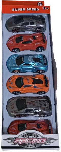 Autók mérete: 8 cm. Műanyagból készült. 3 éves kor felett ajánljuk. 6 darabos verseny autó szett. Ez a hat darabból álló verseny autó szett segít, hogy elindulj a fantázia világában történő kalandokra.